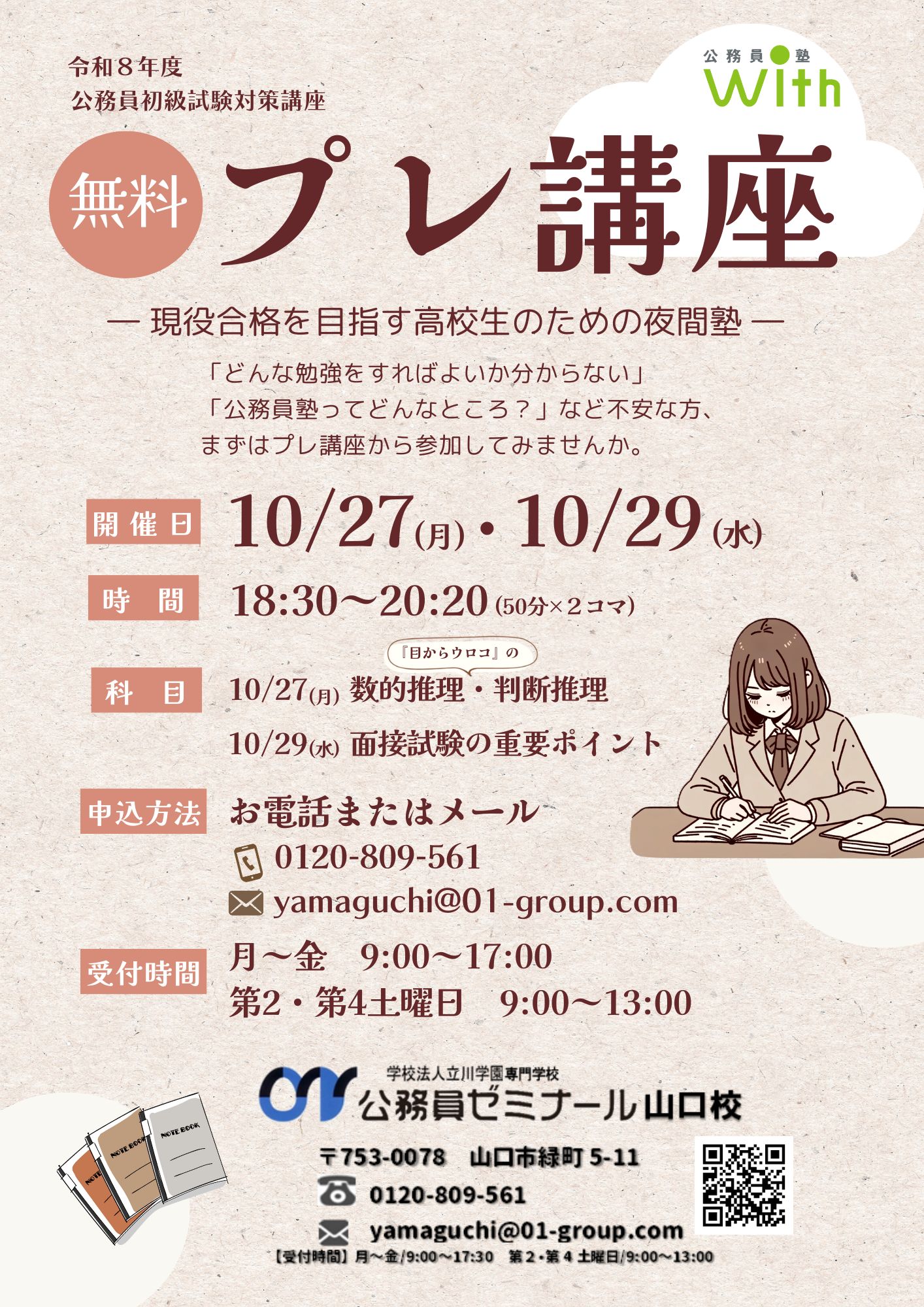 3/26(水)も公務員ゼミナール山口校にて2日目を実施致します。