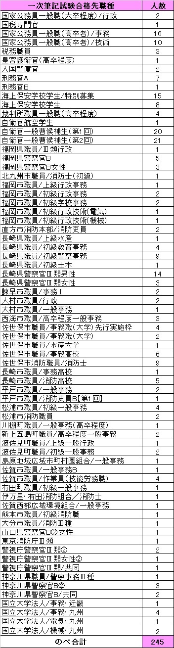 国家公務員(国家一般職(高卒程度)、税務職員、裁判所職員、海上保安学校学生、刑務官)