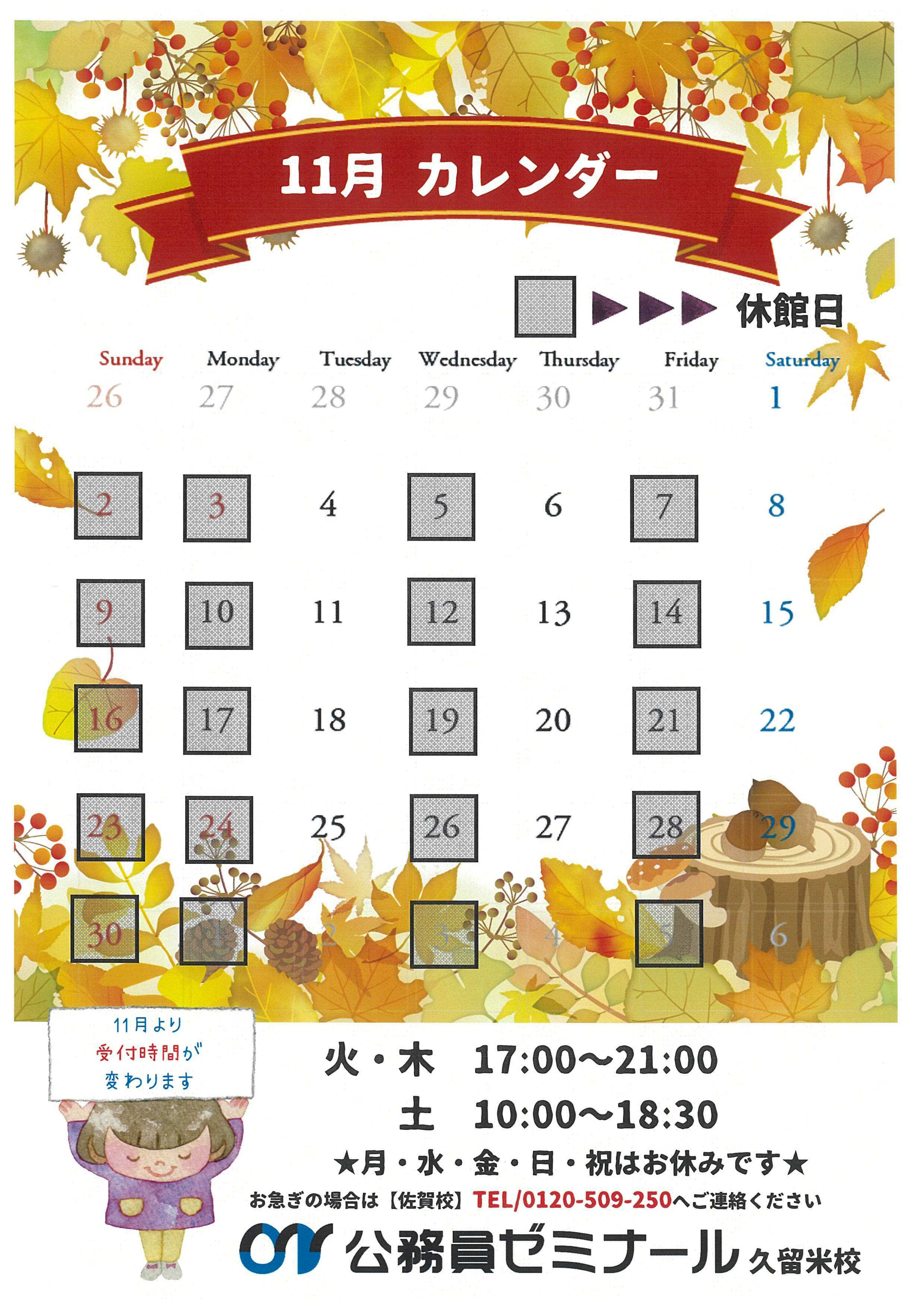 【久留米校】11月より受付時間が変わります - 2025/07/13