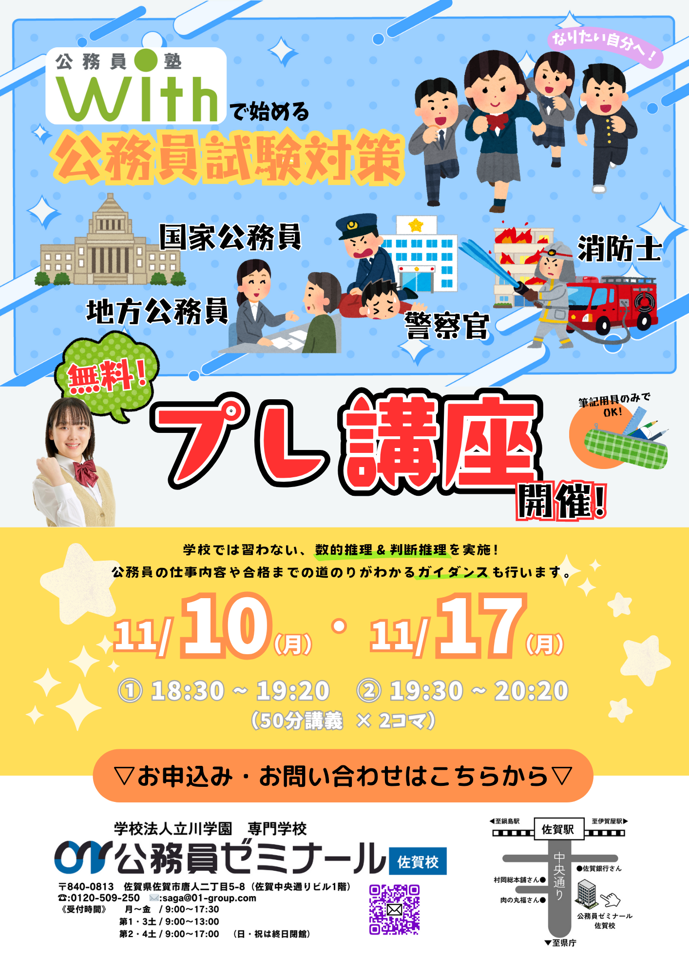 【佐賀校】高校生必見👀無料!公務員塾withプレ講座のお知らせ - 2025/10/08