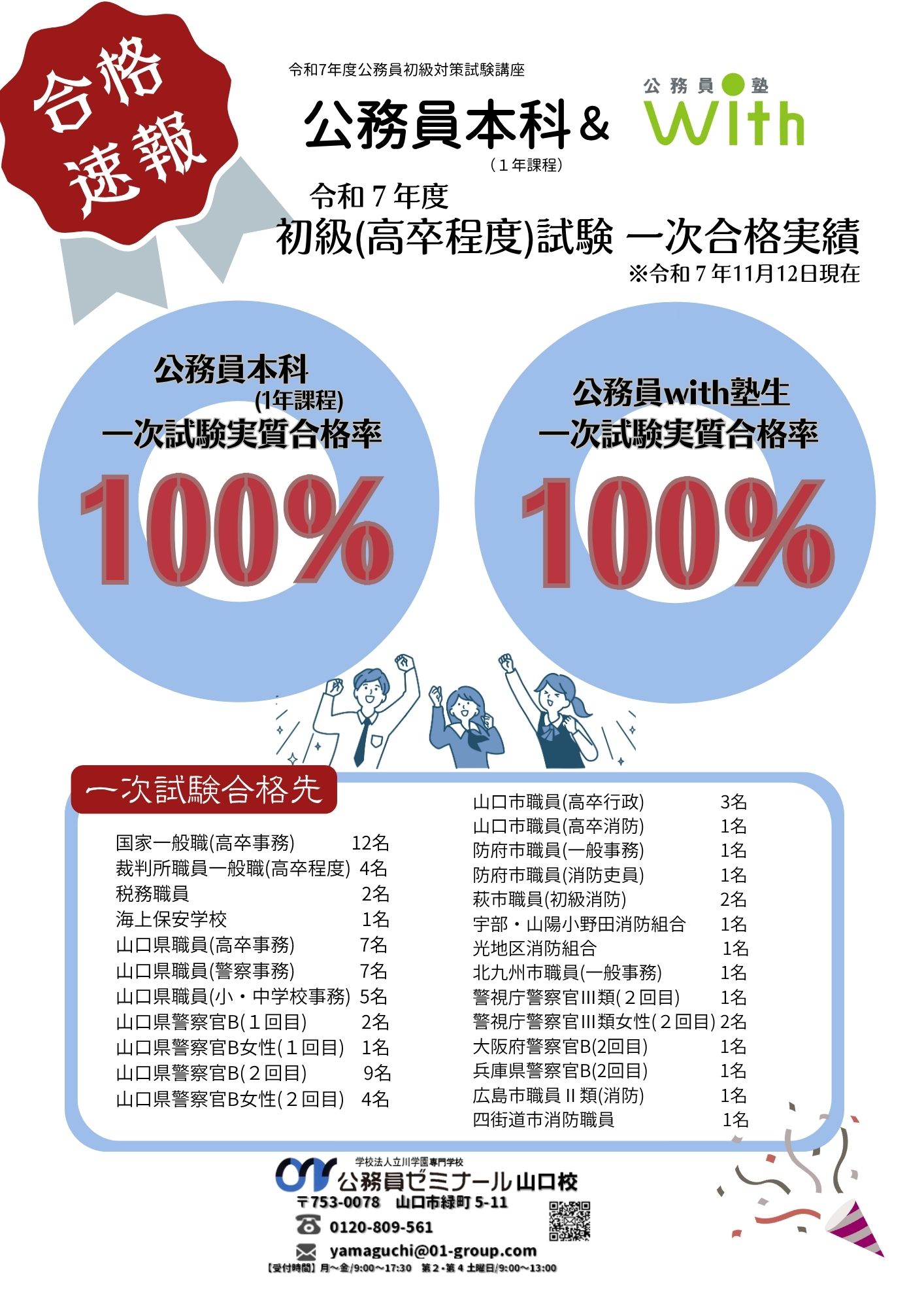 地元に実績!山口県職員・山口県警察官・山口市職員に多数最終合格!